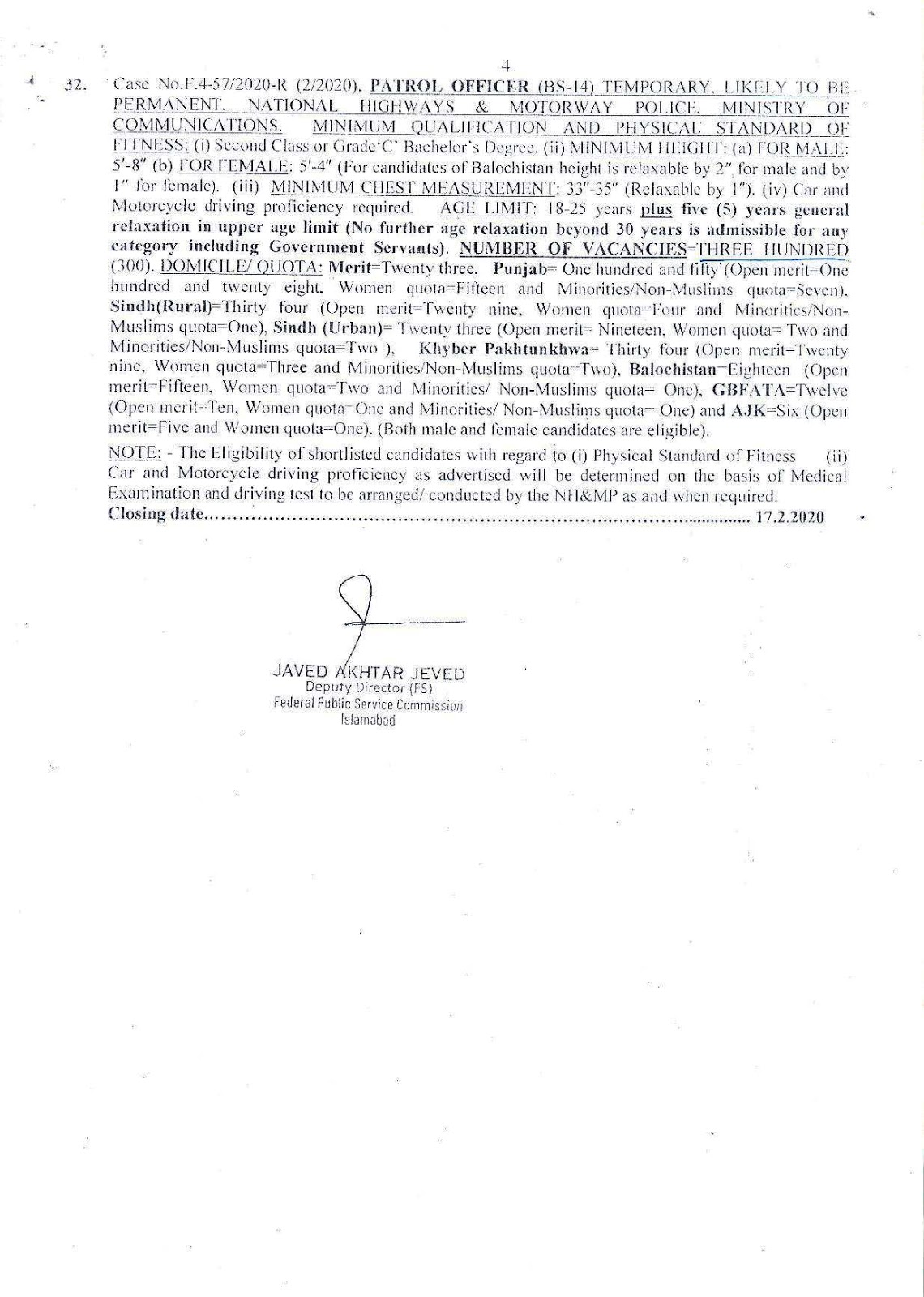 Petrol Officers Job in National Highway Motorway Police Jobs 2020